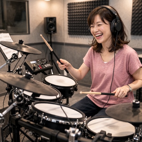 ドラムと英語の日常会話を一緒に習得できちゃう、まさに一石二鳥のクラス。